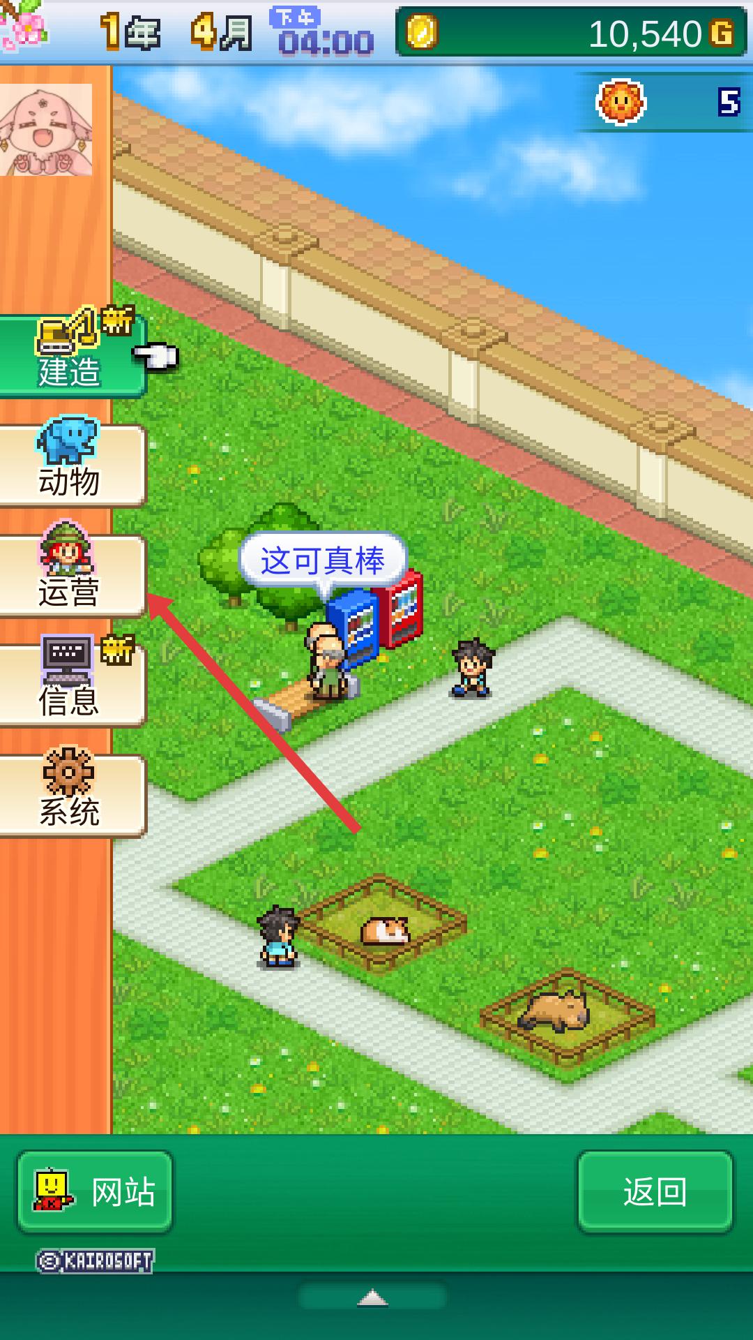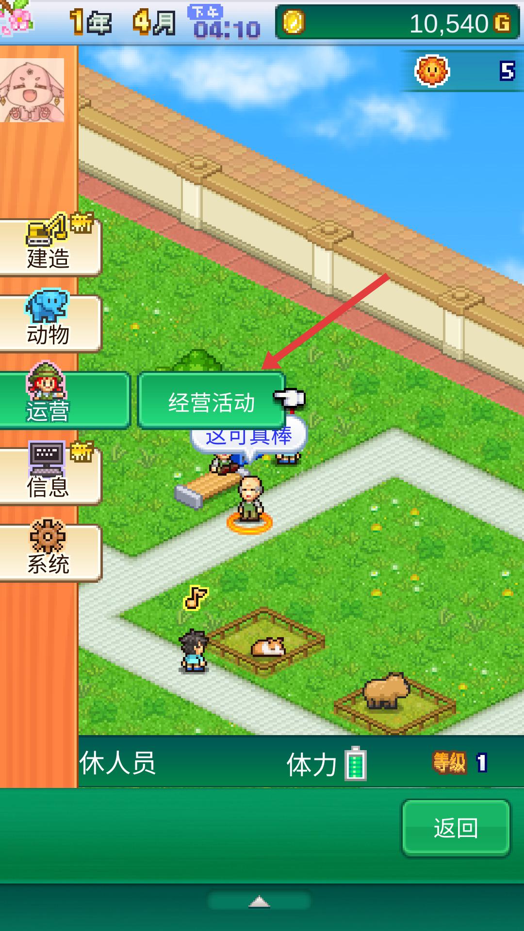 1、點(diǎn)擊運(yùn)營(yíng)按鈕,進(jìn)入運(yùn)營(yíng)菜單,可開(kāi)展經(jīng)營(yíng)活動(dòng)提升動(dòng)物園知名度與收益,同時(shí)關(guān)注游客反饋,優(yōu)化動(dòng)物園運(yùn)營(yíng)策略。