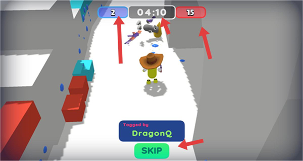 2、玩家被淘汰后可以點(diǎn)SKIP跳過動(dòng)畫重返戰(zhàn)場(chǎng),需要注意隊(duì)友位置跟著藍(lán)隊(duì)大部隊(duì)推進(jìn)別落單。