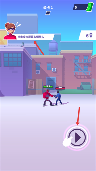 1、游戲開始時按照提示點擊攻擊屏幕右側敵人,這是戰(zhàn)斗的基礎操作需及時點擊發(fā)起攻擊開啟戰(zhàn)斗進程。