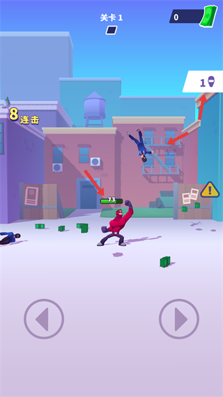 3、通過連擊提升戰(zhàn)斗效率快速擊敗敵人注意剩余敵人數(shù)量,集中火力消滅最后敵人以完成關卡期間留意自身血量避免被敵人擊敗。