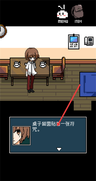 4、根據(jù)調查獲得的線索,如桌子背面的符咒等,繼續(xù)在房間內探索,解開更多謎題,推動劇情發(fā)展。