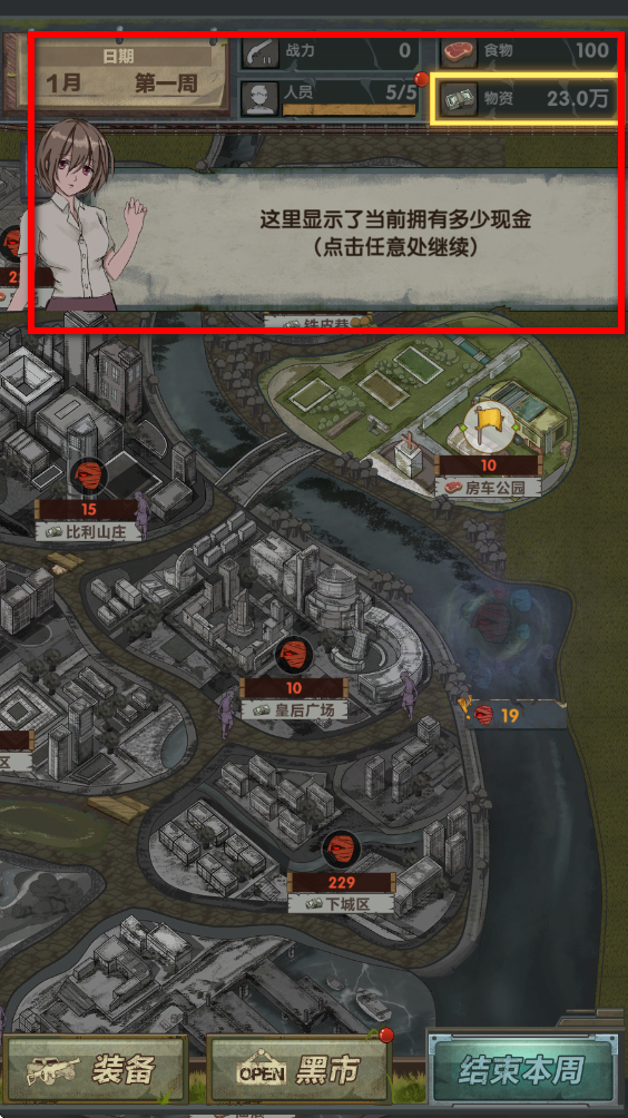 1、界面上方清晰地顯示現(xiàn)金等資源數(shù)值,得時刻關(guān)注當(dāng)前現(xiàn)金量,點擊任意處就能繼續(xù)游戲流程。