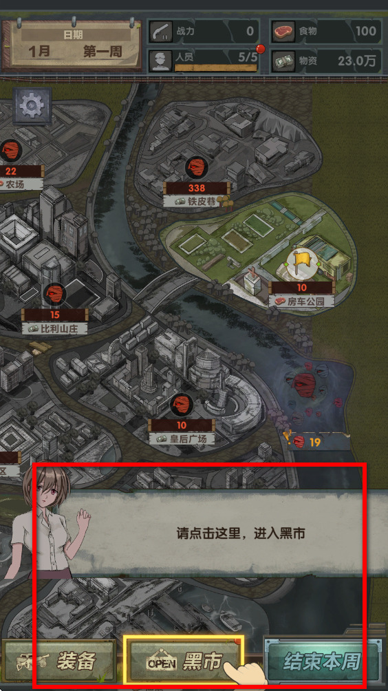2、點擊黑市按鈕進(jìn)入黑市界面,可在黑市里進(jìn)行各類物資買賣操作,借此來獲取或消耗資源。