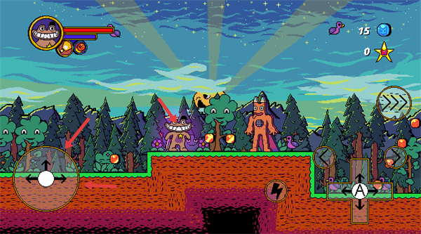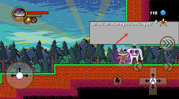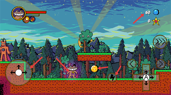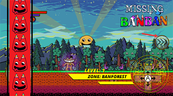 1、游戲開始時熟悉界面右側(cè)的加速和操作按鈕,利用這些按鈕控制角色移動和行動開啟在Banforest區(qū)域的冒險。