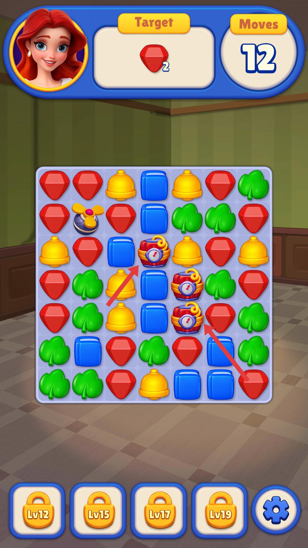 3、利用道具組合消除,如觸發(fā)特殊道具可大范圍消除目標(biāo),快速減少剩余目標(biāo)數(shù)量,提高通關(guān)效率。