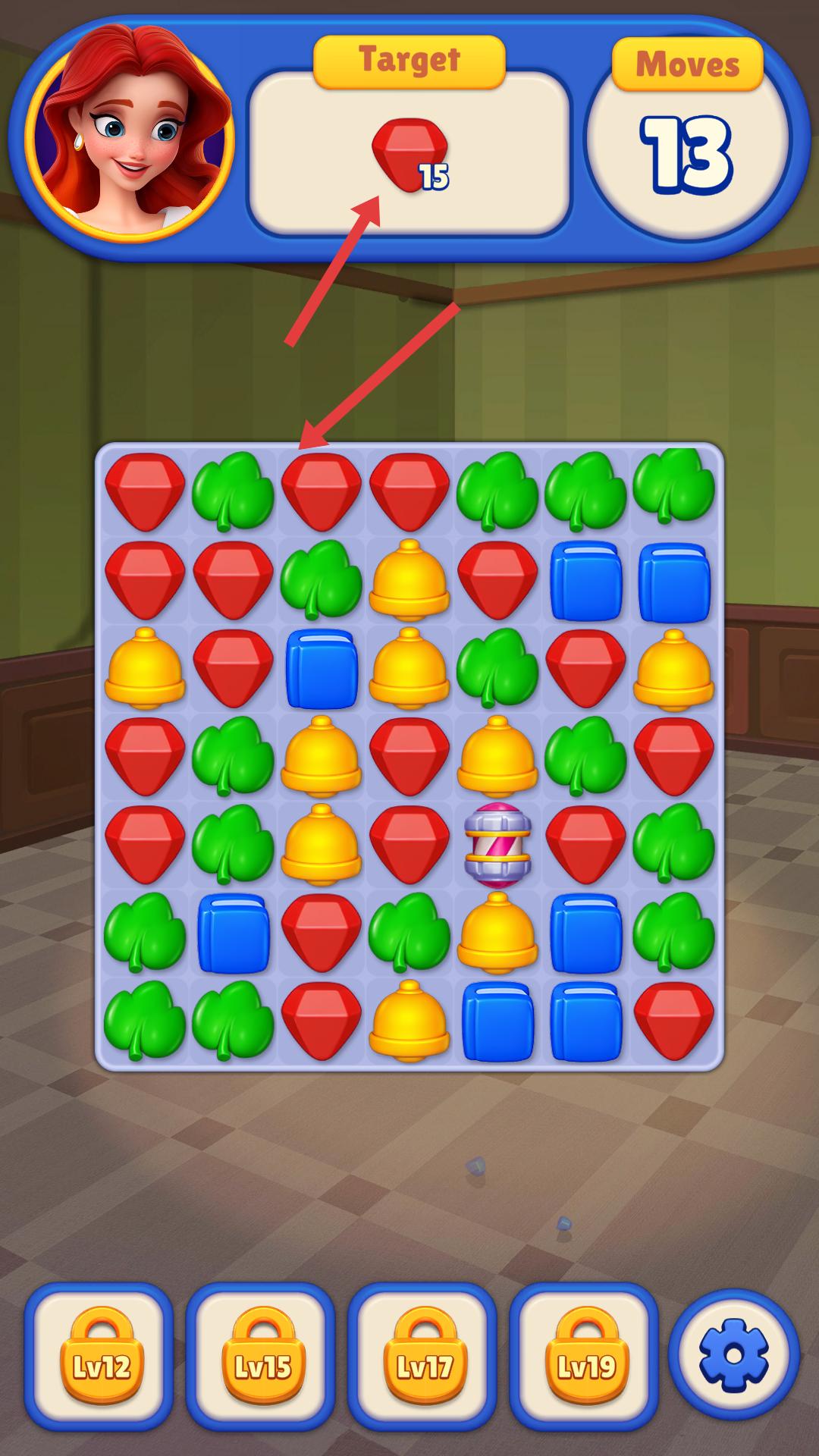 2、在消除關(guān)卡,觀察目標(biāo)道具數(shù)量,規(guī)劃消除步驟,通過匹配相同道具消除,逐步完成目標(biāo),注意剩余步數(shù)限制。