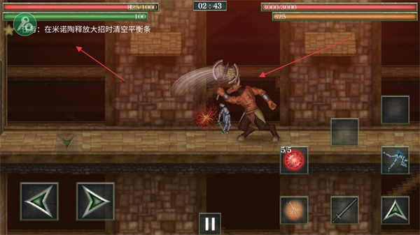 4、通過方向鍵控制角色移動,躲避Boss攻擊,同時使用武器和技能道具發(fā)起進攻,合理搭配攻擊策略。