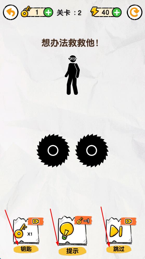 3、關卡內(nèi)若遇到難以通關的情況,可以點擊鑰匙或者提示按鈕來獲思路,或者點擊使用跳過繼續(xù)。