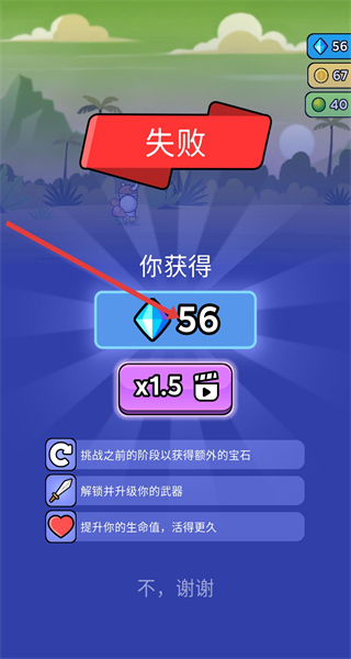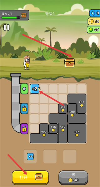 4、失敗后直接用寶石解鎖武器升生命,返回關(guān)卡優(yōu)化防線布局優(yōu)先連高價值格子。