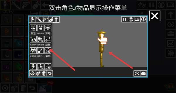 2、編輯模式選生物分類拖金色人形生物到場(chǎng)景,放置后雙擊打開(kāi)操作菜單,試試激活讓生物行動(dòng)用翻轉(zhuǎn)改變朝向。