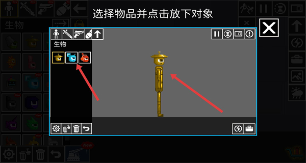 4、戰(zhàn)斗時(shí)選好地圖進(jìn)游戲利用編輯好的生物布局作戰(zhàn),遇到難搞敵人返回編輯模式,給生物加改變重力調(diào)整大小等效果。