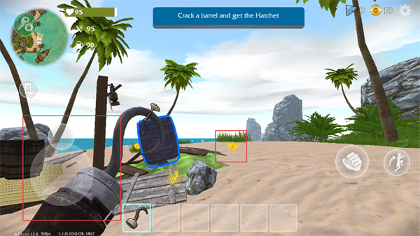 2、玩家可在游戲里面搜集金幣,金幣可用于解鎖道具,斧頭可用于砍伐樹(shù)木、破壞障礙物,助力海島生。