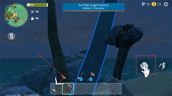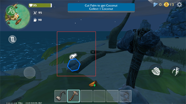 3、借助地圖探索海島的沙灘、椰林、巖石區(qū)域,尋找隱藏的資源點、工具和食物,推動生存進(jìn)程。