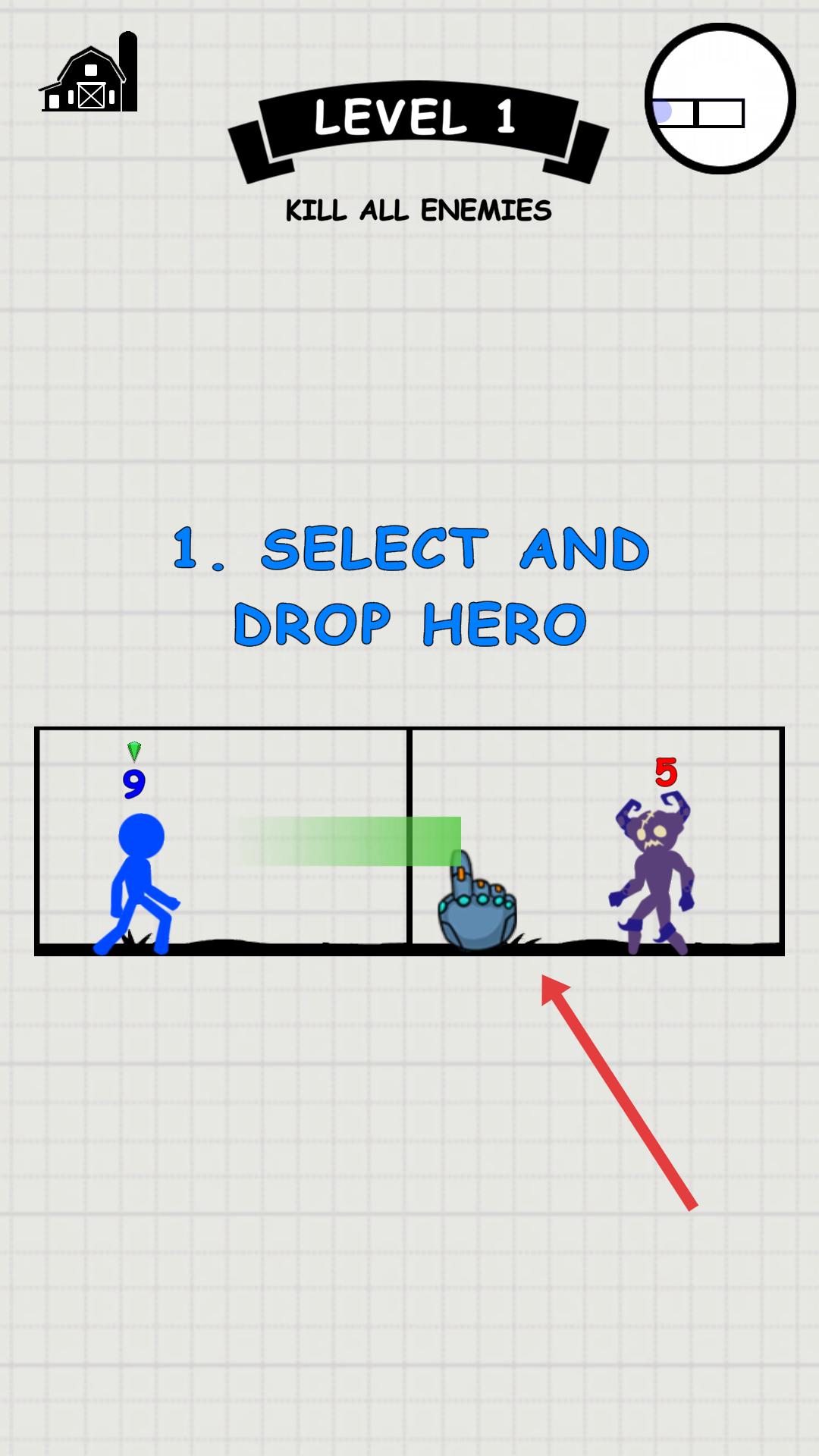 1、點擊開始按鈕進入游戲,在關卡中選擇并放置英雄,讓英雄進入戰(zhàn)斗區(qū)域,開始與敵人對決。