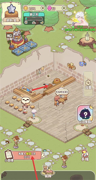 3、玩家需要根據(jù)小目標(biāo)完成任務(wù)領(lǐng)取獎(jiǎng)勵(lì),積累為顧客服務(wù)的經(jīng)驗(yàn),提高經(jīng)營效率和做菜的品質(zhì)。