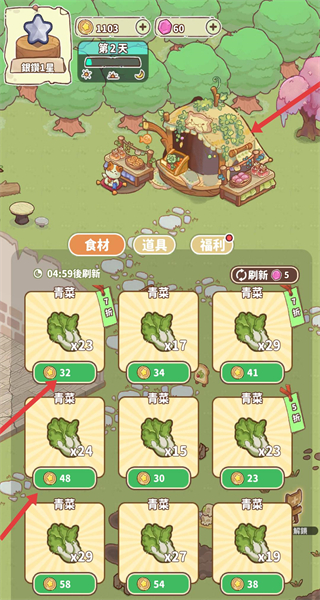 4、循環(huán)升級(jí)評分經(jīng)營日報(bào)做日常任務(wù)采購食材,金幣優(yōu)先升農(nóng)家樂等級(jí)解鎖更多玩法快速擴(kuò)張經(jīng)營。