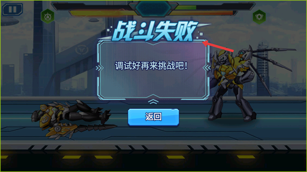 4、若戰(zhàn)斗失敗點擊返回按鈕總結(jié)失敗原因,調(diào)整戰(zhàn)術(shù)和技能選擇調(diào)試好后再次挑戰(zhàn)確保下次戰(zhàn)斗勝利。