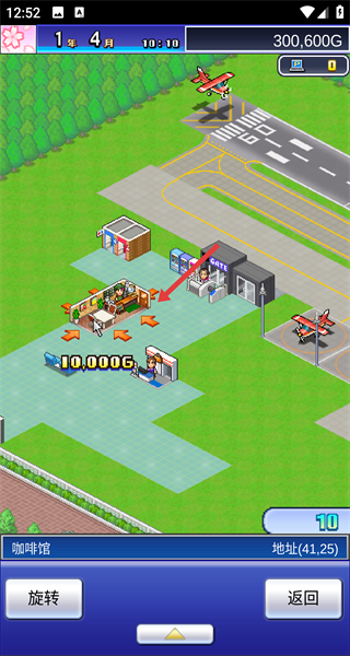 3、選定咖啡館后,在機場地圖內(nèi)尋找合適的空地,點擊該空地,將咖啡館放置在所選位置,完成建造。
