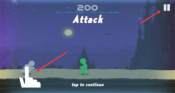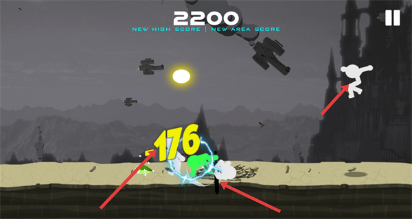 1、選AREA開始遇到落石提前滑動(dòng)屏幕躲,綠色火柴人靠近敵人自動(dòng)攻擊,優(yōu)先清遠(yuǎn)程敵人別被消耗血量。
