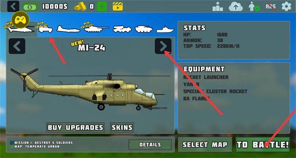 2、玩家點擊進載具選單,挑選自己喜歡的載具如直升機汽車等,可以用金幣解鎖尚未擁有的載具。