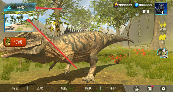 2、成功創(chuàng)建角色后主界面左上角開始按鈕是關(guān)鍵入口,點擊它進入恐龍棲息的開放場景正式開啟充滿未知與挑戰(zhàn)的冒險旅程。