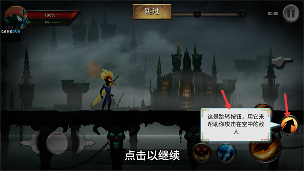 2、了解跳轉(zhuǎn)按鈕的功能用它來攻擊空中的敵人,在戰(zhàn)斗中根據(jù)敵人位置合理使用跳轉(zhuǎn)按鈕擴大攻擊范圍。