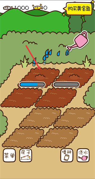 3、點擊澆水按鈕,為播種的土地澆水,促進種子的生長或孵化,推動游戲進程。