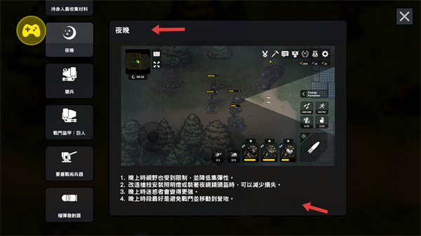 1、夜晚時段視野受限且集彈性降低需改造槍枝安裝照明燈或夜視鏡頭盔減少損失,盡量避免戰(zhàn)斗并移動到營地確保安全度過夜晚。