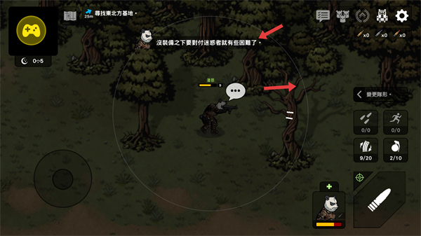 2、執(zhí)行尋找東北方基地任務時遭遇敵人需利用右側(cè)攻擊按鈕射擊,瞄準敵人要害同時關(guān)注自身生命值確保在戰(zhàn)斗中生存并推進任務。