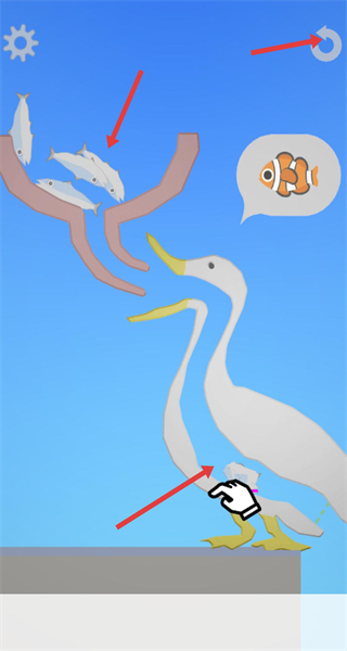 3、鵜鶘想要吃許多魚可以將上方魚群拖到鵜鶘嘴邊,配合操作讓其獲取對應(yīng)魚類達(dá)成目標(biāo)過關(guān)。