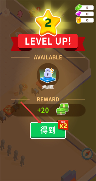 1、在游戲場景,收集地上的金錢,積累資源,為后續(xù)的區(qū)域開發(fā)和經(jīng)營活動提供資金支持。