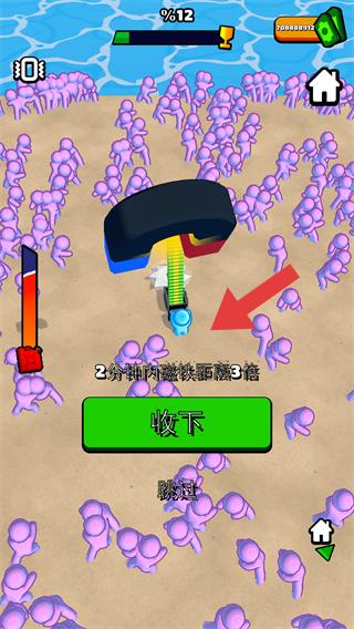 2、遇到增益道具時(shí)可選擇收下獲取2分鐘內(nèi)磁鐵距離3倍的效果,利用該效果快速收集現(xiàn)金和道具加速資源積累。
