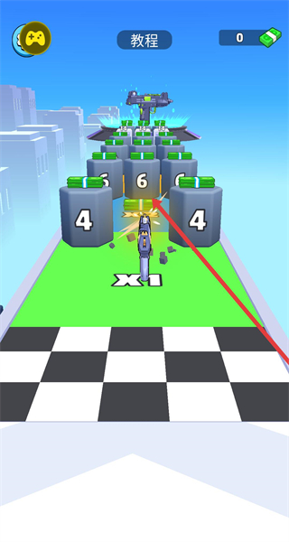 3、玩家到達(dá)終點(diǎn)結(jié)算時(shí),選擇在綠色區(qū)域射擊數(shù)字更大的方塊獲得更多獎(jiǎng)勵(lì),利用彈道摧毀方塊快速通過(guò)終點(diǎn)線。