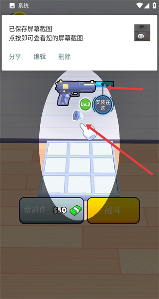 3、點(diǎn)擊裝在這將Lv2部件裝配到槍支對(duì)應(yīng)位置,通過(guò)完成改裝提升射擊屬性為下一關(guān)戰(zhàn)斗做準(zhǔn)備。