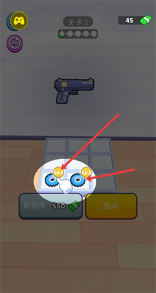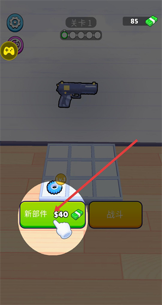 1、玩家字關(guān)卡1初始花費(fèi)40現(xiàn)金點(diǎn)擊新部件,可以為槍支解鎖基礎(chǔ)配件提升戰(zhàn)力準(zhǔn)備后續(xù)裝配。