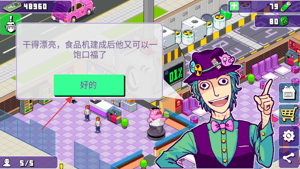 4、完成建筑或升級(jí)后,點(diǎn)擊好的按鈕推進(jìn)劇情,繼續(xù)探索餐廳運(yùn)營的更多內(nèi)容。