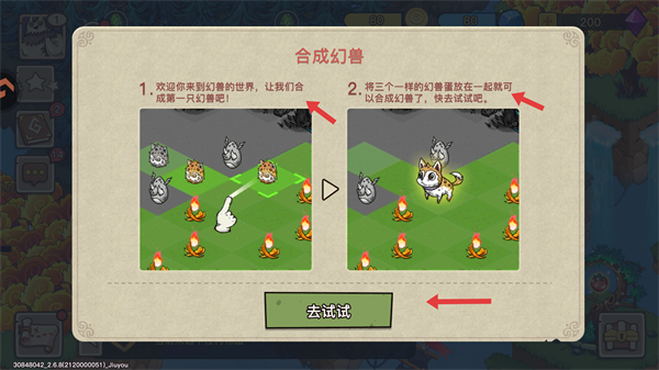 1、游戲中合成幻獸需將三個一樣的幻獸蛋放在一起點擊去試試開始合成,完成后可獲得新幻獸推進(jìn)游戲進(jìn)程。