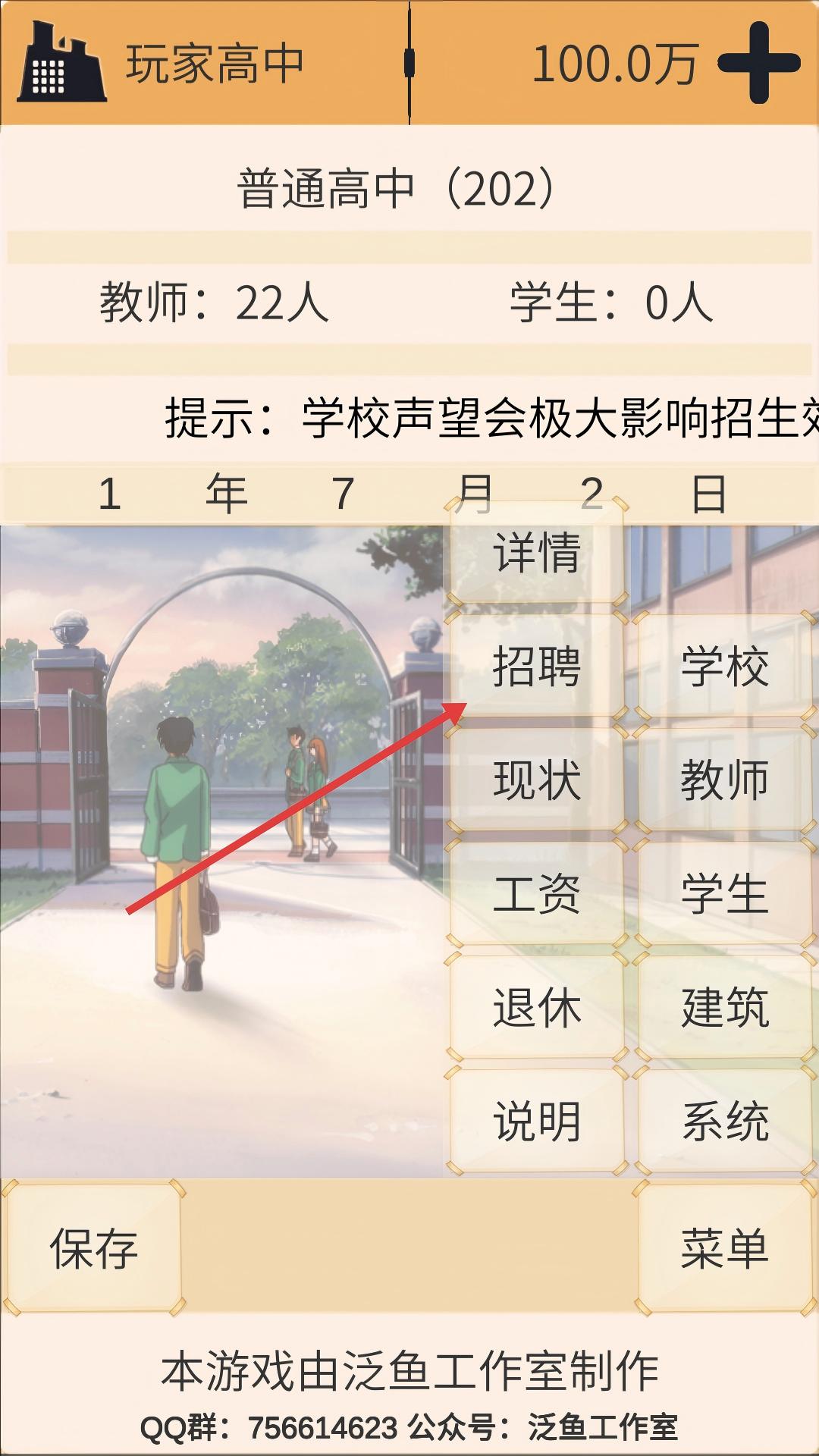 3、點(diǎn)擊招聘選項,進(jìn)入教師招聘界面,這是充實(shí)學(xué)校師資力量的操作,通過招聘可增加教師數(shù)量。