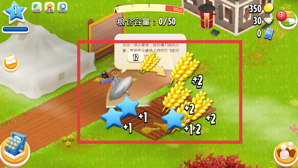 3、收割小麥時(shí),可獲得星星和小麥獎(jiǎng)勵(lì),提升農(nóng)場(chǎng)的等級(jí)和資源儲(chǔ)備,增強(qiáng)農(nóng)場(chǎng)的經(jīng)營(yíng)能力。