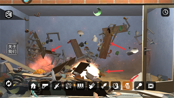 2、從基礎(chǔ)錘子到重型沖鋒槍共十余種破壞工具,每種武器具備獨(dú)特破壞范圍與作用效果。炸彈類武器實(shí)現(xiàn)區(qū)域爆破但存在冷卻時(shí)間,特殊裝備需要完成隱藏任務(wù)解鎖。