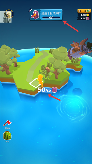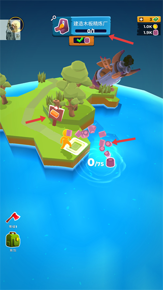 3、在建造木板精煉廠任務(wù)中收集足夠資源后,前往指定建造區(qū)域開(kāi)始建造木板精煉廠同時(shí)繼續(xù)收集新的紫色資源。