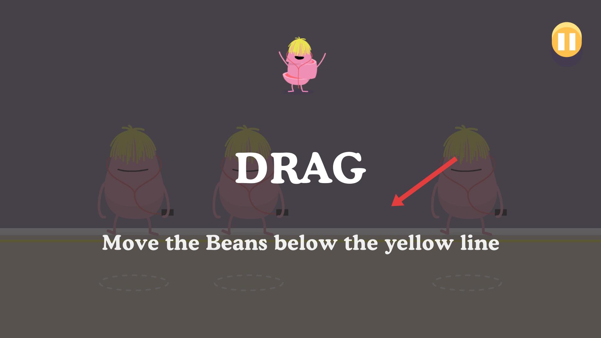 4、按照提示將豆子拖動(dòng)到黃線下方,操作時(shí)需注意拖動(dòng)的力度和位置,確保豆子準(zhǔn)確到達(dá)指定區(qū)域,完成關(guān)卡任務(wù)。