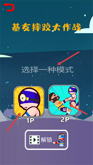 2、在基友摔跤大作戰(zhàn)中選擇游戲模式,可選擇1P單人或2P雙人模式開啟摔跤挑戰(zhàn)。