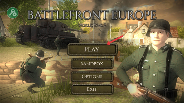 1、點擊PLAY進入BattlefrontEuropeWorldWar2游戲開啟二戰(zhàn)戰(zhàn)場的戰(zhàn)斗挑戰(zhàn)。