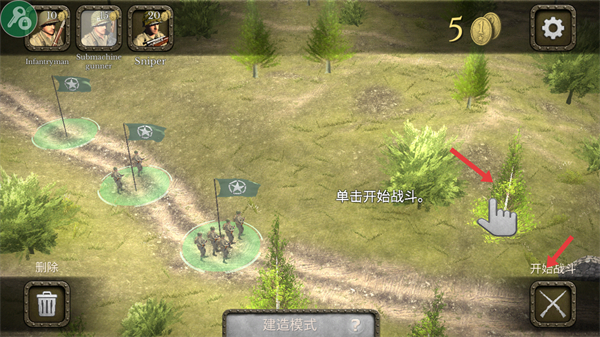 4、部署好士兵后點擊開始戰(zhàn)斗讓士兵們投入戰(zhàn)場,展開與敵軍的對決爭取獲得戰(zhàn)斗勝利。