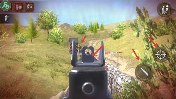 3、進(jìn)入射擊視角后瞄準(zhǔn)敵軍利用射擊和瞄準(zhǔn)按鈕精準(zhǔn)攻擊,消滅敵軍推進(jìn)戰(zhàn)場進(jìn)度。