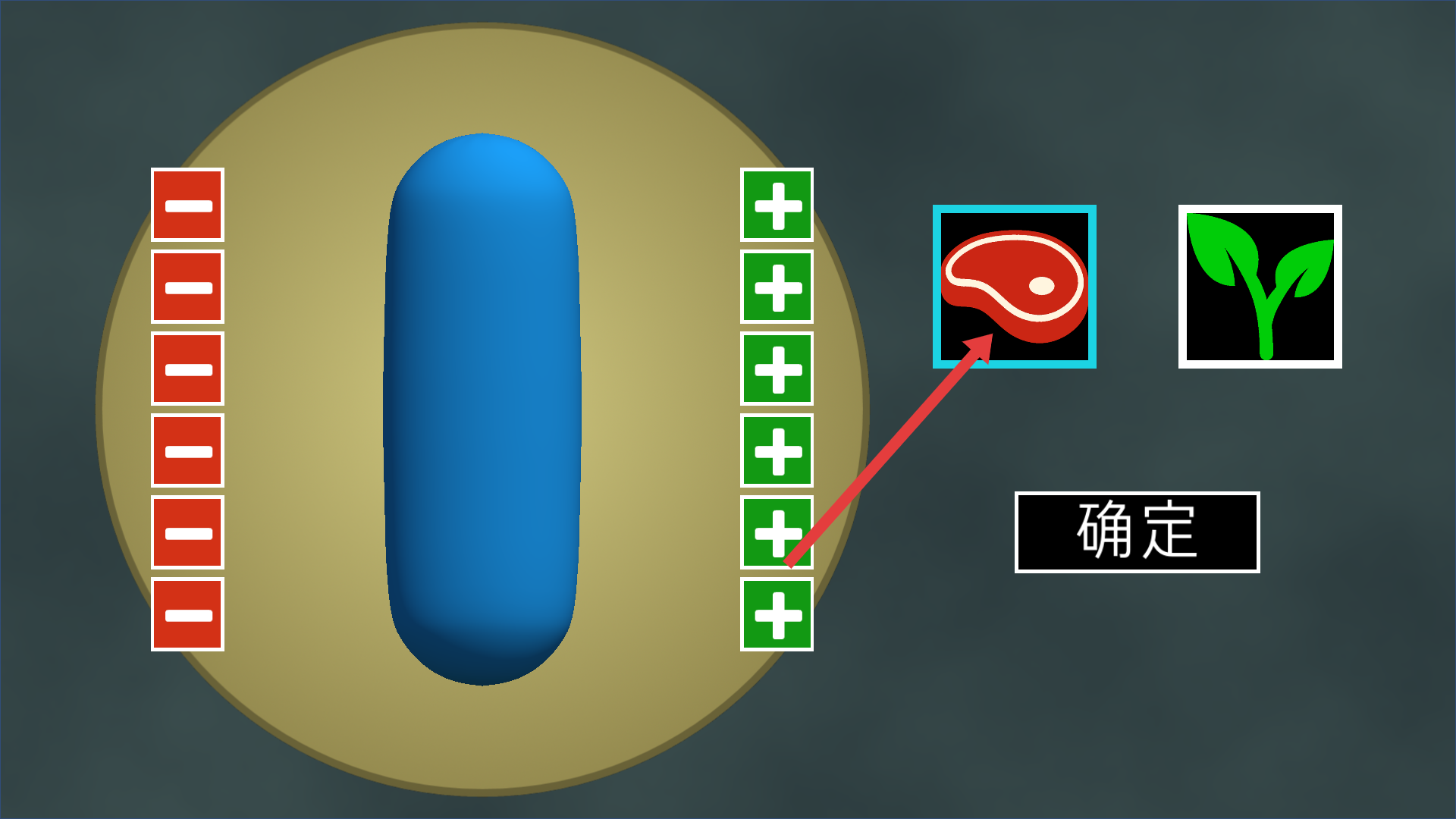 2、生物設(shè)置界面可選擇肉類食物類型,調(diào)整生物的屬性加點(diǎn),為生物生存與進(jìn)化做準(zhǔn)備。