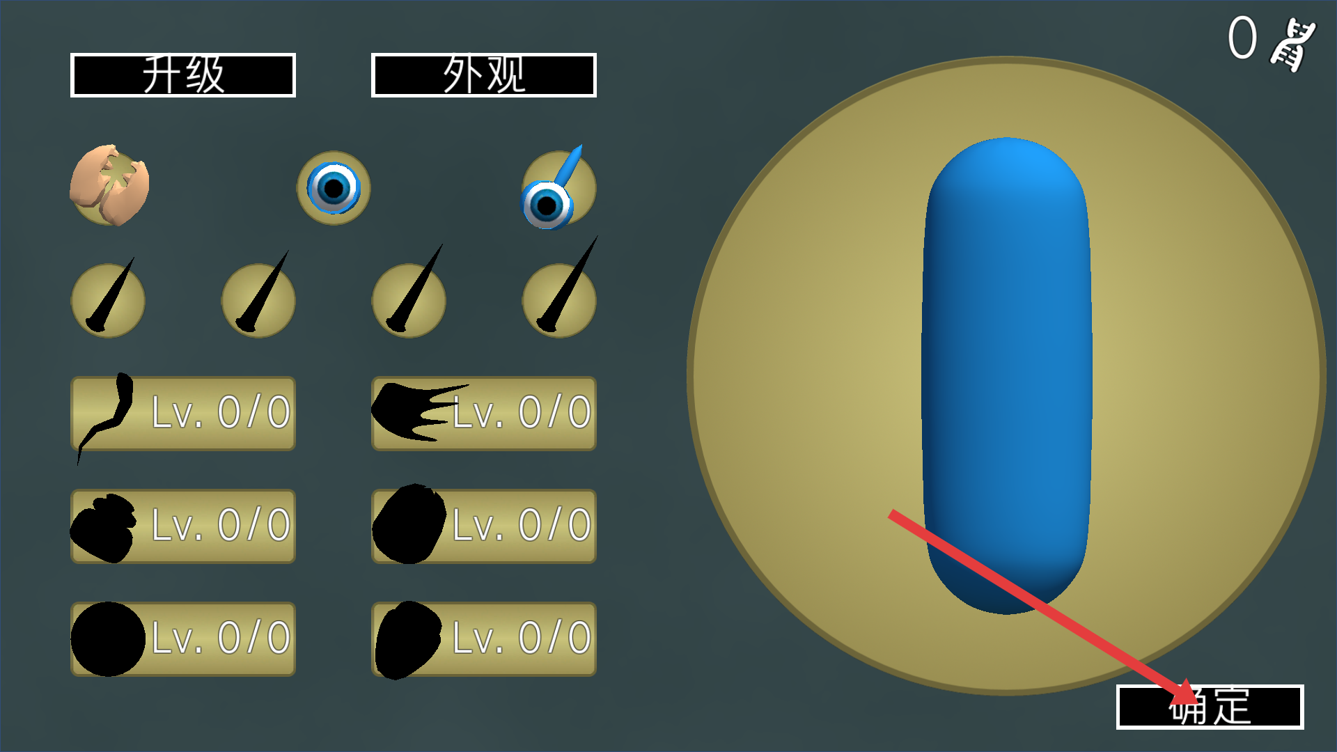 3、還可對生物的外觀進(jìn)行設(shè)置,選擇不同的器官、肢體等外觀元素,打造獨(dú)特的生物形象,設(shè)置完成后點(diǎn)擊確定。