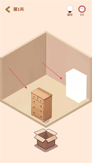 2、在關(guān)卡中根據(jù)提示將家具從紙箱中取出并放置到合適位置,合理規(guī)劃房間空間,打造功能與美觀兼具的居住區(qū)域。