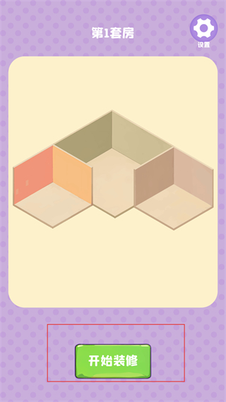 1、玩家可選擇不同套房如第1套房,點擊開始裝修進入裝修流程,開啟從空房到精美居室的打造之旅。